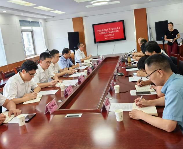 探望慰问过后,岳国伟、辛嵩一行来到郯城县交通运输局围绕党建结对共建基地、技术合作、人才培养、成果转化等进行座谈交流。